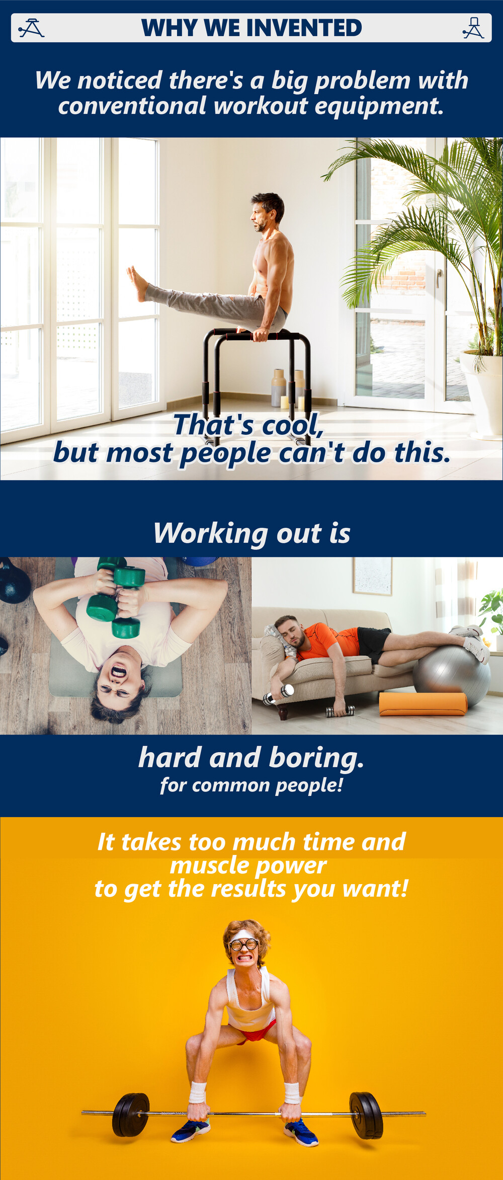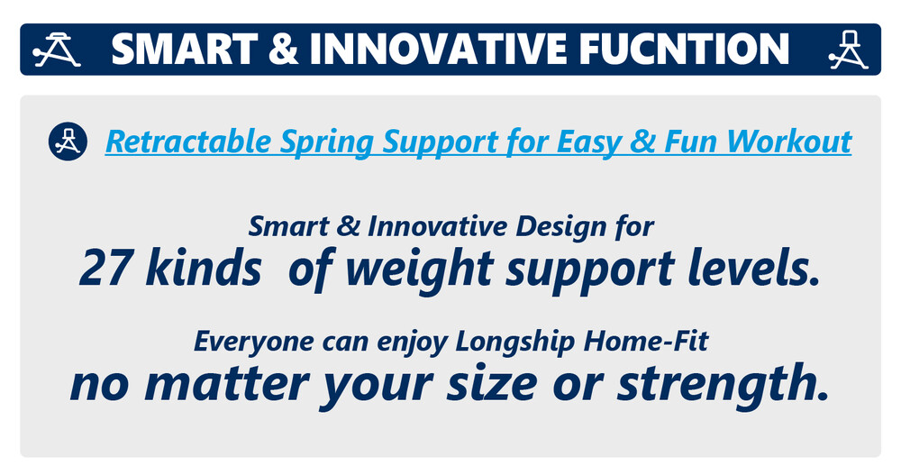 That is significant difference between Longship Home-Fit and Conventional workout equipment. You can challenge working out with conventional workout equipment after you have increased your strength easy & fun with Longship Home-Fit.